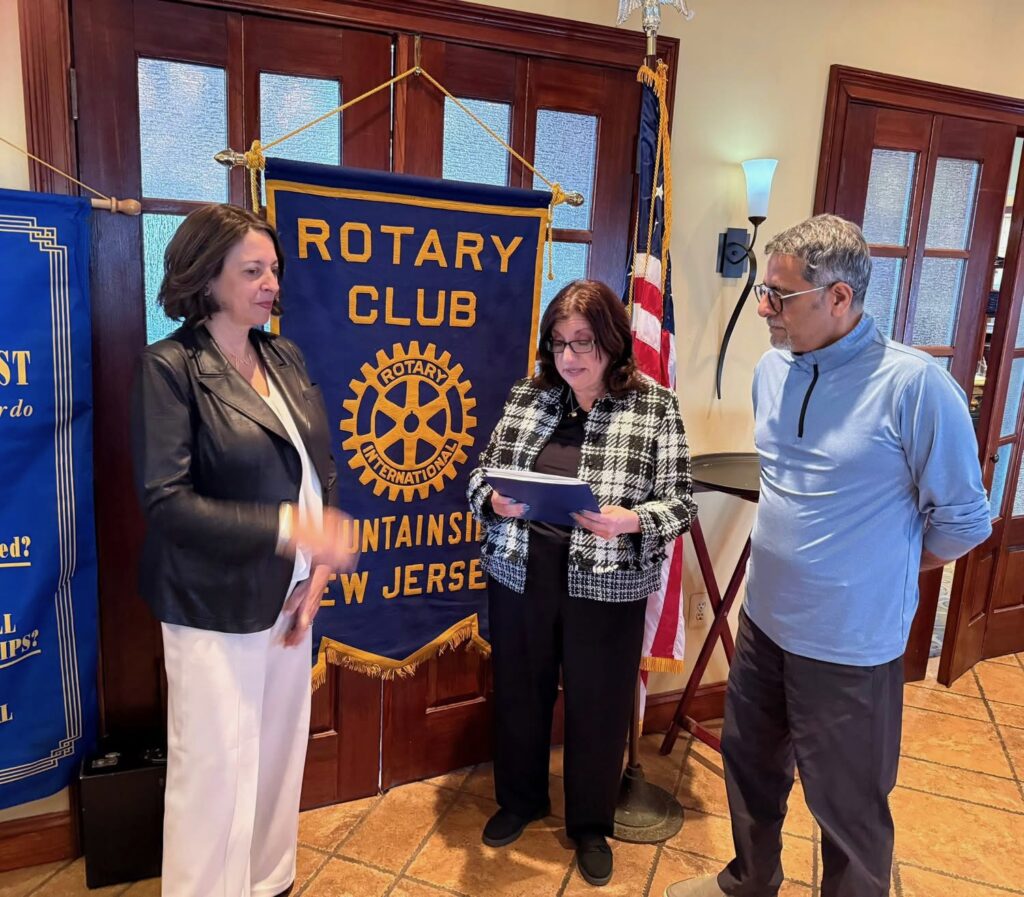 The Rotary Club of Mountainside proudly welcomed three new members during our December meetings. New members Christopher Kinney, Superintendent of Mountainside Public Schools, and Avia Johnson, Owner of Cooking The Blues Away, Marlene Perez-Santalla, Realtor Salesperson at Compass were sworn in by Ray Freaney, Past District Governor, District 7475. “We are delighted to welcome Christopher, Avia and Marlene as the newest members of our Rotary family,” said Club President, Rose Marie Sinisi. “Each brings unique experience and service centered values that reflect the Rotary mission of service above self. We look forward to the contributions they will bring to our programs and community efforts.” The Rotary Club of Mountainside continues to welcome new members who are committed to service, fellowship and making a difference locally and globally. We meet Thursdays at noon at Mosaico, with the exception of the third Thursday of each month, when the club gathers at 5:30 p.m. at alternative locations announced prior to meetings. Contact Rose Marie Sinisi for info about Rotary and to confirm our meeting schedule,rotaryrose@yahoo.com, 908-625-7097